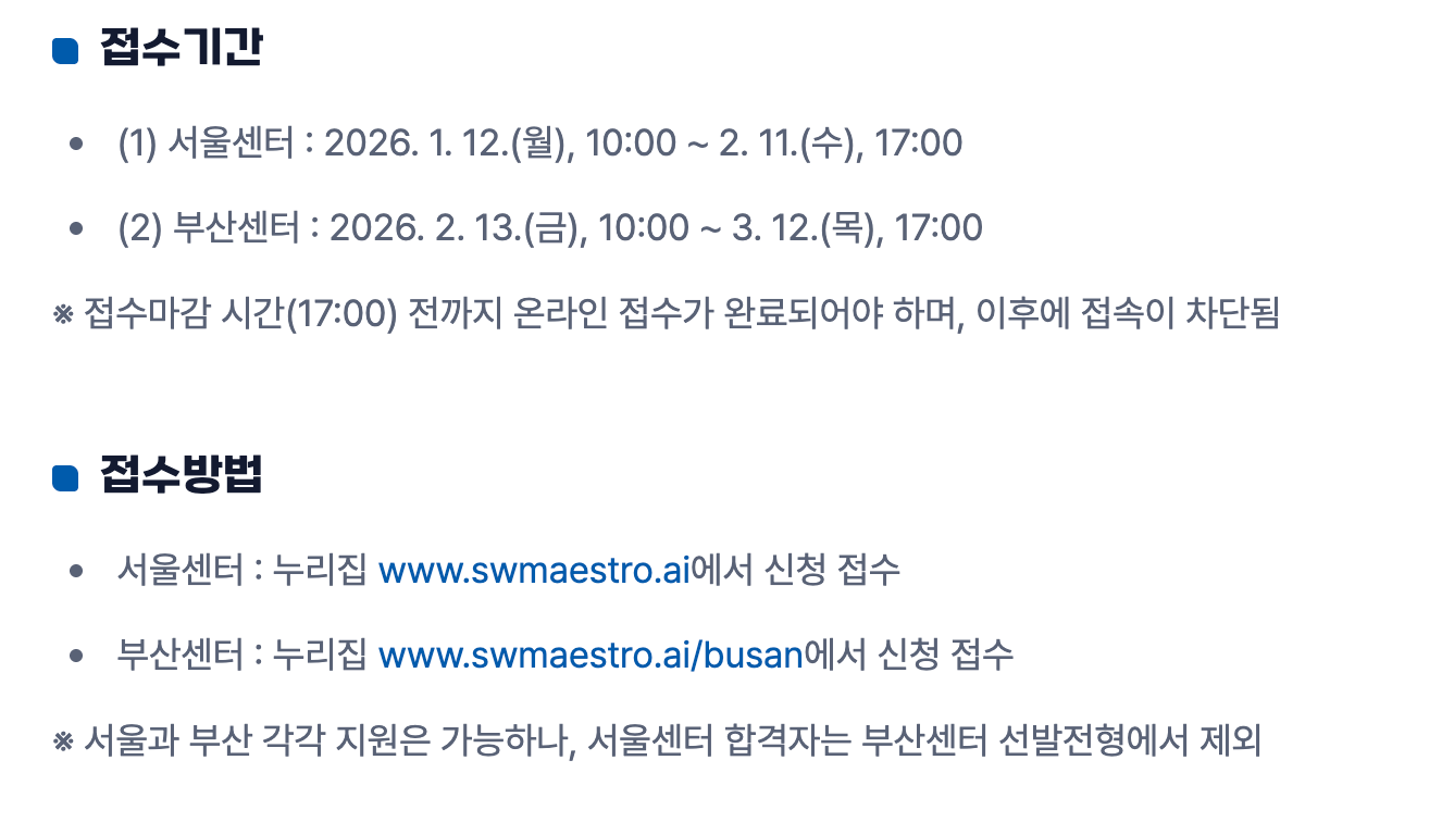 각각 지원 가능하나, 서울에 먼저 최종 합격할 경우, 부산 센터 선발 전형에서 제외됩니다.